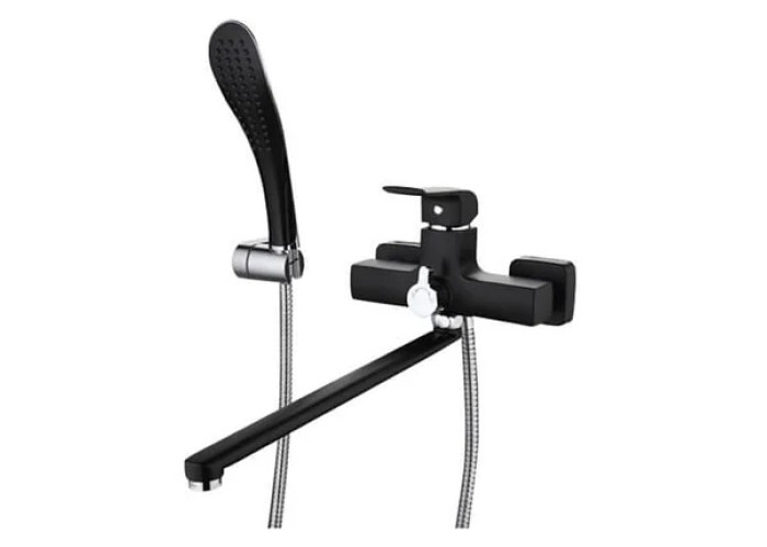 Змішувач для ванни Gappo Aventador G2250 з довгим, плоским, поворотним гусаком. Кріплення настінне. Діаметр картриджа Ø35. Покриття корпусу – чорна емаль.