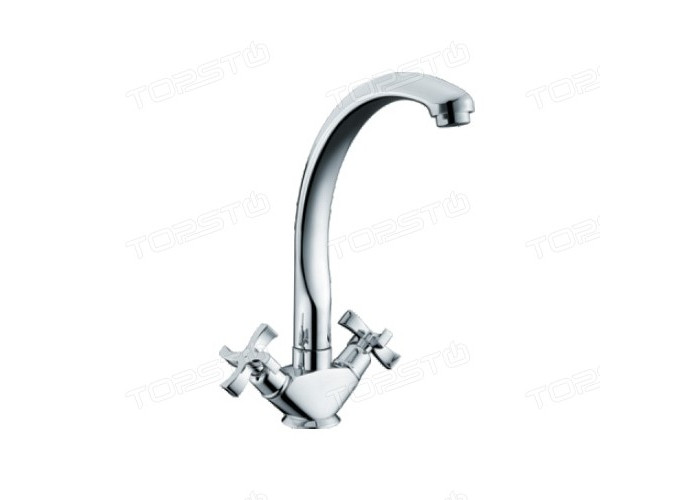 Хромований вентильний змішувач для кухні Gappo Pollmn G4143 з високим поворотним гусаком типу вухо. Вентилі-хрестики. Кріплення шпилька. Матеріал – латунь з хромованим покриттям, яке захищає змішувач від корозії і має приємний зовнішній вигляд. В комплект поставки входить змішувач, кріплення, гнучкі підведення. Країна-виробник - Китай. В змішувачах Gappo використовується аератор NeoPerl, який робить потік води м'якшим і дозволяє економити до 30% води при щоденному використанні.