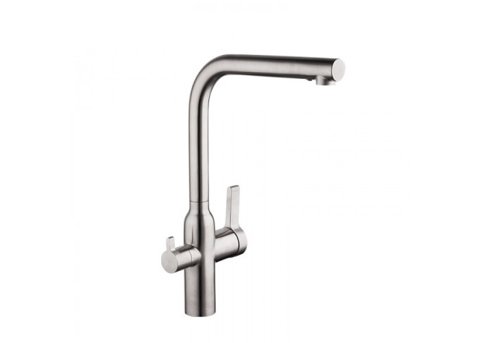 Змішувач для кухні Gappo G4399-4 з Г-подібним гусаком. Головна особливість моделі – можливість підключення фільтра, що дозволяє пити чисту і корисну воду просто з-під крана. Кріплення змішувача – гайка. Діаметр картриджа - Ø35. Матеріал – нержавіюча сталь. В комплект поставки входить змішувач, кріплення, гнучкі підведення. Країна-виробник – Китай. Спеціальна технологія робить керамічну частину картриджа змішувача Gappo ідеально рівною і гладкою, що дозволяє виключити пошкодження і тріщини, а також запобігає утворенню накипу. Картриджі мають непористу структуру і навіть з плином часу залишаються ідеально гладкими. В змішувачах Gappo використовується аератор NeoPerl, який робить потік води м'якшим і дозволяє економити до 30% води при щоденному використанні.