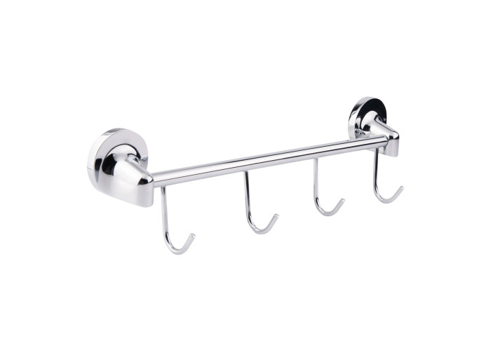 Тримач для рушників і халатів Cosh (CRM) S-80-910B4 виконаний у вигляді стрижня з чотирма фіксованими гачками. Він кріпиться на стіні на зручній висоті за допомогою монтажних елементів, які входять до комплекту. Поверхня хромована, тому менш схильна до корозії і бруду.