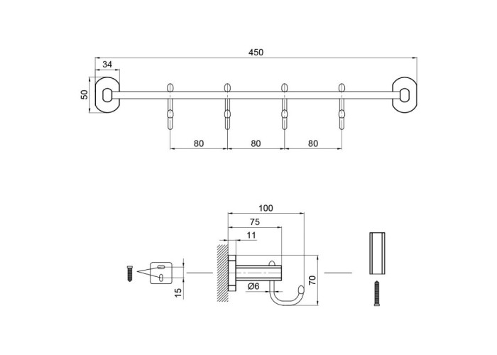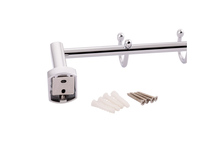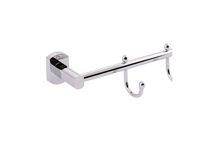 Універсальний тримач для рушників і халатів Qtap Liberty CRM 1154-4 виконаний у вигляді стрижня з чотирма гачками. Він кріпиться на стіні на зручній висоті до вставок за допомогою монтажних елементів, які входять до комплекту. На вставки нанесено фірмовий логотип виробника. Прихований монтаж дозволяє зберегти обробку ванної кімнати. Поверхня хромована, тому менш схильна до корозії й бруду. Під час прибирання досить протерти за допомогою мильного розчину та м‘якої серветки.