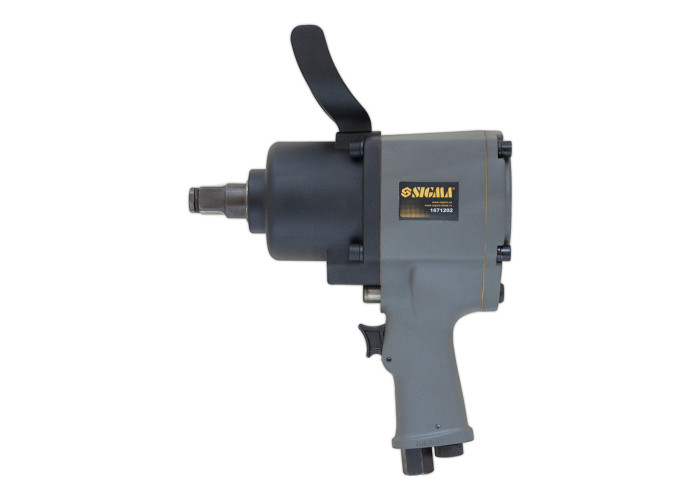 Гайковерт ¾ пневматичний посилений 1670 Нм Sigma (6712021) - потужний, продуктивний, зручний інструмент для професійного обслуговування вантажного автотранспорту. Збільшений крутний момент дозволяє легко і швидко виконувати важкі монтажні роботи. Особливості: посилений twinhammer механізм - створює збільшену потужність, достатню для роботи не тільки з насадками 3/4", але і з насадками 1" (через перехідник 3/4"- 1"). Надійний металевий корпус в полімерному покритті і ковані деталі двигуна - забезпечують тривалий термін експлуатації; додаткова рукоятка, розміщена у центру маси - забезпечує комфортний і точний хват, знижує рівень втоми при роботі; 4-ступінчасте регулювання швидкості; зручний реверс-перемикач. Характеристики: приєднувальний квадрат 3/4"; крутний момент 1670 Нм; швидкість обертання 1600 об / хв; витрата повітря (в середньому) 233 л / хв; пневмораз'ем 3/8"; робочий тиск 6.3 бар; вага 7.57 кг.