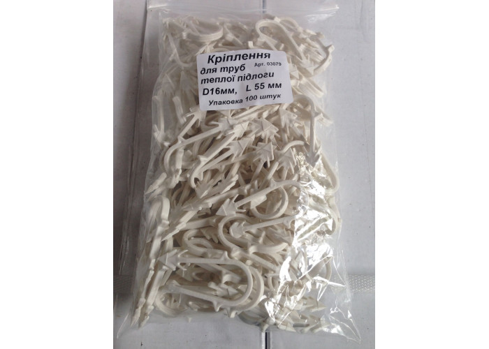 Гарпун-скоба для кріплення труби теплої підлоги Ø16, довжина 55мм, біла (упаковка 100шт)
