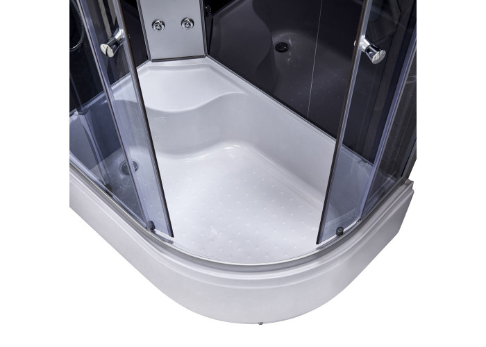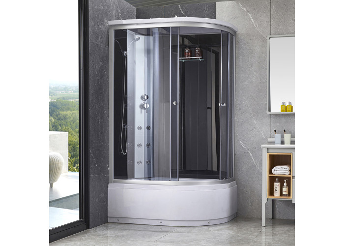Гідромасажний бокс Lidz Tani SBM120x80L.SAT.HIGH.GR є вдалою альтернативою ванни для сучасного санвузла. Кутова конструкція боксу дозволить комплексно вирішити питання душових процедур і заощадити простір. Бокс складається з скляних дверей, акрилового піддону, скляних задніх стінок і кришки, ручного і верхнього душа і зручною полки. Функція гідромасажу зробить водні процедури ще приємніше.