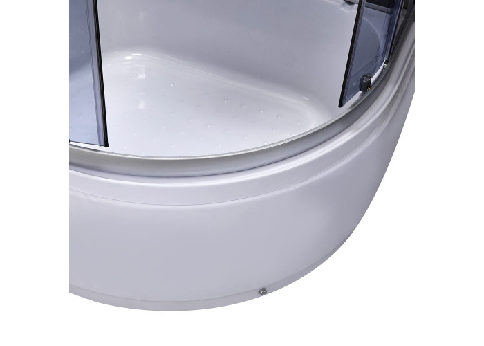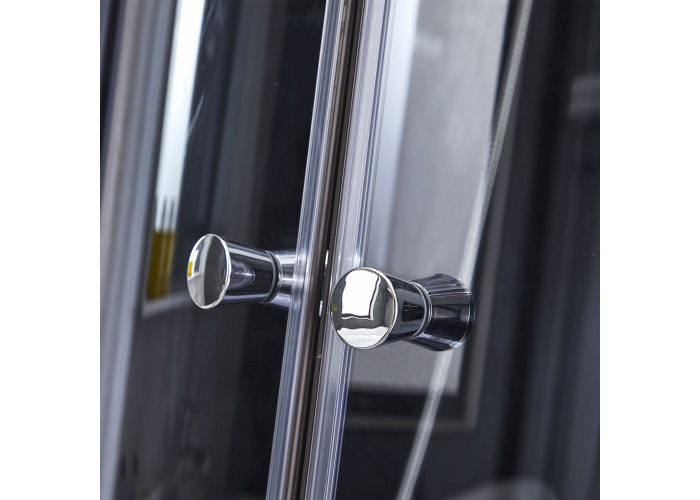 Піддон, сифон, двері, ручки, подвійні ролики, профіль, кріплення, задня стінка, глухе скло, скляні двері, змішувач, лійка для ручного душа, лійка для верхнього душа, душовий шланг, кронштейн, ніжки, гідромасажні форсунки, верхня кришка, перехідник 32/50 мм, полиця.