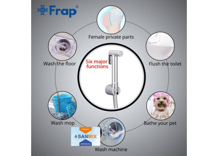 Гігієнічний душ зі змішувачем Frap F7508 латунний, тому всередині не іржавіє в результаті дії води. Так само він не боїться високих температур і різкої зміни температурних режимів. Для додаткового захисту і поліпшення зовнішнього вигляду зовні хромований. Дане напилення відрізняться високою стійкістю до стирання і просто в догляді.