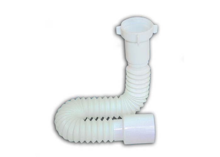 Гнучка труба для сифона. Виробництво Україна. Колір: білий. Матеріал: поліетилен. Основні принципові відмінності гофротруби від виробів більш раннього сантехнічного періоду: можливість регулювання довжини, поворот практично під будь-яким кутом, наявність жорстких пластикових наконечників - без яких неможлива дійсно надійна обтискна герметизація з'єднань. Гнучка зливна труба може випускатися різного діаметру жорстких наконечників (32, 40, 50 мм та ін) як з боку підключення до каналізації, так і до сифона. Торгова марка SANTEHPLAST (Сантехпласт).