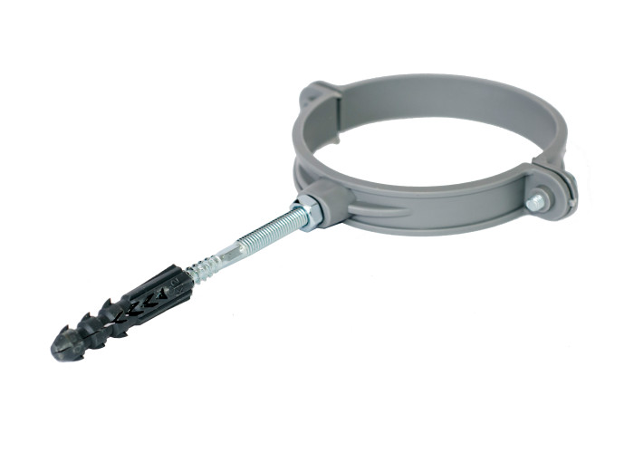 Хомут каналізаційний пластиковий темно-сірого кольору потрібен для міцної фіксації каналізаційний труби до стіни. Кріпиться за допомогою дюбелів і саморіза. Ми пропонуємо широкий асортимент каналізаційних хомутів - пластикових і металевих, а також хомут в зборі зі шпилькою і дюбелем від різних постачальників. У продажу представлені кріпильні хомути діаметрів 32, 40, 50, 110 міліметрів.