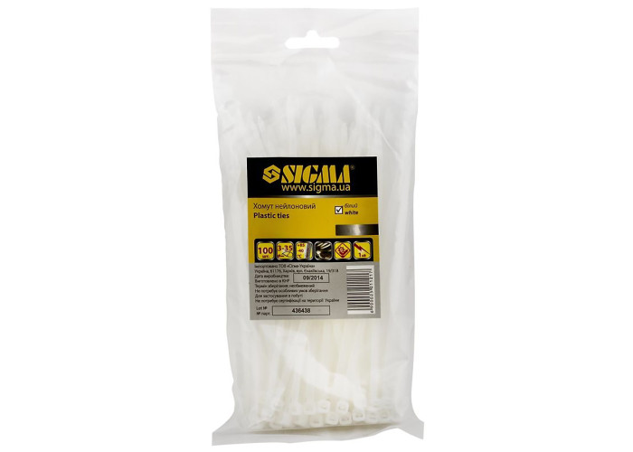 Хомут нейлон 7,9 * 350мм 50шт білий Sigma 2501371