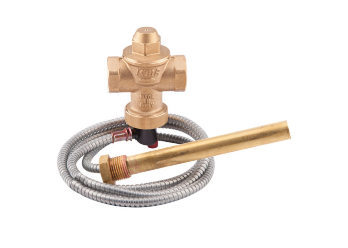 Клапан теплового викиду оберігає котли (наприклад, твердопаливні) від перегрівання. При досягненні значень робочої температури клапан відкривається, і зливає гарячу воду з котла, підмішуючи в нього холодну воду. Завдяки парафінові елементу при досягненні 95 ° C клапан відкриває одночасно злив гарячої води з котла, і вхід холодної води необхідної для зниження робочої температури до встановлених робочих значень. Як тільки температура повертається до нормальних значень, клапан одночасно перекриває злив котла і вхід холодної води. УВАГА: даний клапан не замінює запобіжний клапан.
