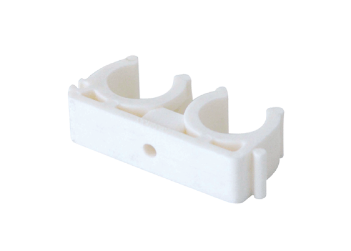 Біла подвійна поліпропіленова кліпса Ø32 TEBO. Продукція поставляється в білому і сірому кольорі і представляє широкий діапазон з'єднувальних елементів і гідравлічної арматури: від 20 до 160 мм. В цілому асортимент бренду ТЕВО включає понад 1000 товарних позицій. У конструкції фітингів ТЕВО technics закладено кілька принципових рішень, що підвищують надійність і зручність застосування. Латунні елементи комбінованих фітингів мають зворотні проточки, що забезпечують надійніше приєднання латунної і поліпропіленової частин. Герметичність з'єднання зберігається навіть при підвищених механічних навантаженнях. Спеціальні мітки на поверхні фітингів спрощують процес монтажу. Продукція повністю відповідає нормам ГОСТ та DIN, проходить контроль якості на всіх етапах виробництва, де використовується високоякісна сировина з Німеччини та Південної Кореї. Розрахунковий термін служби – 50 років за умови правильного монтажу і експлуатації.
