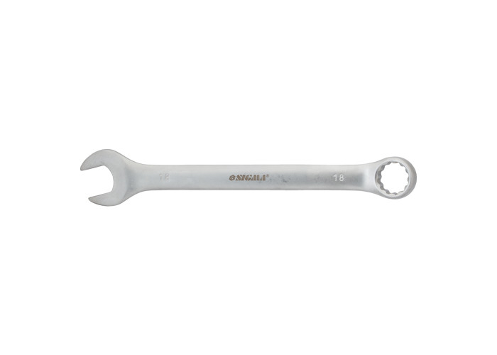 Ключ рожково-накидний 18мм CrV satine з підвісом Sigma (6021631) - рожково-накидні ключі є необхідним інструментом при складанні і розбиранні болтових з'єднань, що мають шестигранний профіль. Призначені для монтажу різьбових з'єднань і обслуговування кріплення, який відповідає розміру ключа. Ріжковий ключ забезпечує більший робочий діапазон в важкодоступних місцях. Накидний ключ охоплює кріпильну деталь з усіх боків і повторюючи її профіль, дозволяє майстру докладати значних зусиль, не побоюючись зриву інструменту і знижує ризик деформації або пошкодження гайки. Використовувати його можливо при наявності вільного доступу до гайок. Головки ключів стандартизовані і мають певний розмір, який вказується на рукоятці ключа. Особливості: хромованадієва сталь; сатинове покриття; збільшена площа зіткнення робочих поверхонь; робота з будь-якими різновидами шестигранного кріплення; зниження ризику деформації граней кріплення при монтажі; міцність і надійність. Купити ключ рожково-накидний Sigma Ви можете, оформивши замо