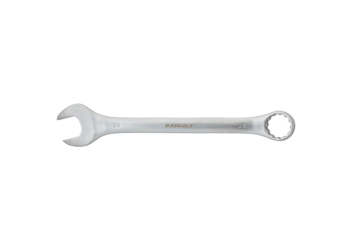 Ключ рожково-накидний 28мм CrV satine з підвісом Sigma (6021731) - рожково-накидні ключі є необхідним інструментом при складанні і розбиранні болтових з'єднань, що мають шестигранний профіль. Призначені для монтажу різьбових з'єднань і обслуговування кріплення, який відповідає розміру ключа. Ріжковий ключ забезпечує більший робочий діапазон в важкодоступних місцях. Накидний ключ охоплює кріпильну деталь з усіх боків і повторюючи її профіль, дозволяє майстру докладати значних зусиль, не побоюючись зриву інструменту і знижує ризик деформації або пошкодження гайки. Використовувати його можливо при наявності вільного доступу до гайок. Головки ключів стандартизовані і мають певний розмір, який вказується на рукоятці ключа. Особливості: хромованадієва сталь; сатинове покриття; збільшена площа зіткнення робочих поверхонь; робота з будь-якими різновидами шестигранного кріплення; зниження ризику деформації граней кріплення при монтажі; міцність і надійність. Купити ключ рожково-накидний Sigma Ви можете, оформивши замо