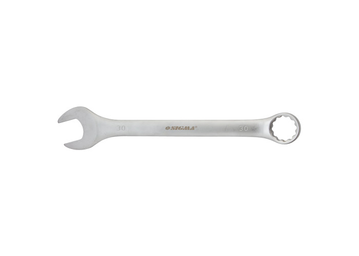 Ключ рожково-накидний 30мм CrV satine з підвісом Sigma (6021751) - рожково-накидні ключі є необхідним інструментом при складанні і розбиранні болтових з'єднань, що мають шестигранний профіль. Призначені для монтажу різьбових з'єднань і обслуговування кріплення, який відповідає розміру ключа. Ріжковий ключ забезпечує більший робочий діапазон в важкодоступних місцях. Накидний ключ охоплює кріпильну деталь з усіх боків і повторюючи її профіль, дозволяє майстру докладати значних зусиль, не побоюючись зриву інструменту і знижує ризик деформації або пошкодження гайки. Використовувати його можливо при наявності вільного доступу до гайок. Головки ключів стандартизовані і мають певний розмір, який вказується на рукоятці ключа. Особливості: хромованадієва сталь; сатинове покриття; збільшена площа зіткнення робочих поверхонь; робота з будь-якими різновидами шестигранного кріплення; зниження ризику деформації граней кріплення при монтажі; міцність і надійність. Купити ключ рожково-накидний Sigma Ви можете, оформивши замо