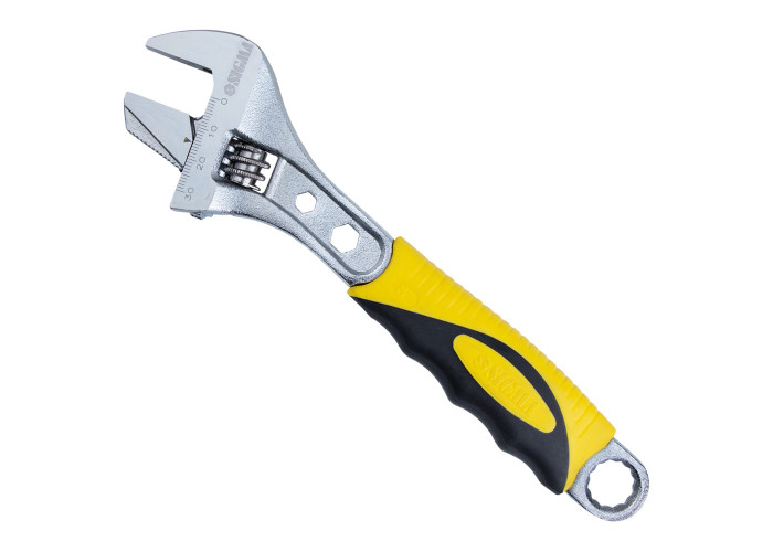 Ключ розвідний з пересувною губкою 200мм, 0-30мм CrV TPR Sigma 4100921. Ключ розвідний з приставною губкою 200мм, 0-30мм CrV (TPR) Sigma (4100921) призначений для відгвинчування і загвинчування гайок, болтів, гвинтів та інших різьбових з'єднань. Зручний при сантехнічних роботах, ремонті автомобілів і велосипедів. Виготовлений з високоякісної хромованадієвої сталі з антикорозійним покриттям. Має рухливу переставну губку, зазубрену з одного боку, завдяки чому може використовуватися як трубний ключ. На губах ключів нанесена міліметрова шкала для регулювання ширини захвату. Двокомпонентна ергономічна ручка зручно лежить в руці. Ребриста поверхня ручки не дозволяє ключу вислизнути з руки при роботі. Ключ оснащений отвором для підвішування. Переваги: хромованадієва сталь; антикорозійне покриття; комфортна, двокомпонентна ручка запобігає ковзанню інструменту при роботі; Отвір для підвісу на гачок; переставна губка дозволяє використовувати інструмент в якості трубного ключа.