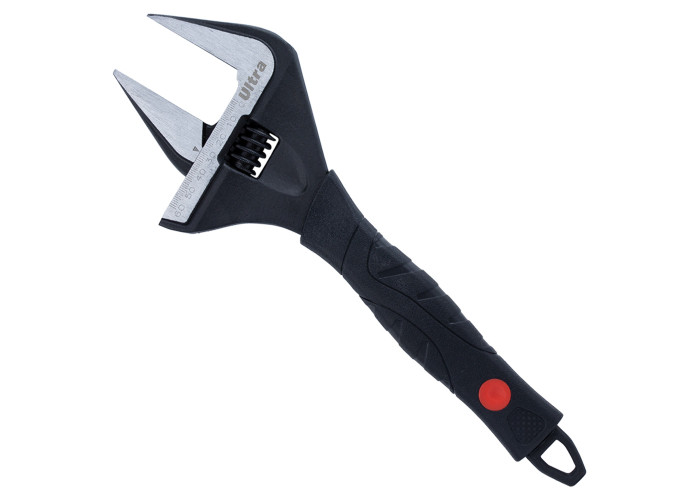 Ключ розвідний з тонкими губами 310мм, 0-60мм CrV Ultra 4100142 призначений для відгвинчування і загвинчування гайок, болтів, гвинтів та інших різьбових з'єднань. Зручний при сантехнічних роботах, ремонті автомобілів і велосипедів. Ключ повністю виготовлений з хромованадієвої сталі зі спеціальним фосфатним, захисним покриттям. Має ергономічну рукоятку, яка зручно лежить в руці і не ковзає під час роботи. Градуйована шкала, у вигляді 50-ти насічок і цифр, нанесена на голівку ключа. У ньому збільшено захоплення зіву до 55% в порівнянні зі звичайним розвідним ключем. Також, ключ має більш глибоку посадку, яка забезпечена подовженими губками на 30%. Розвідний ключ має тонку голівку, що в свою чергу дозволяє використовувати його в обмеженому просторі. Менший кут нахилу головки всього 15 ° забезпечує більшу швидкість в роботі, точність і дозволяє створювати більше зусилля.