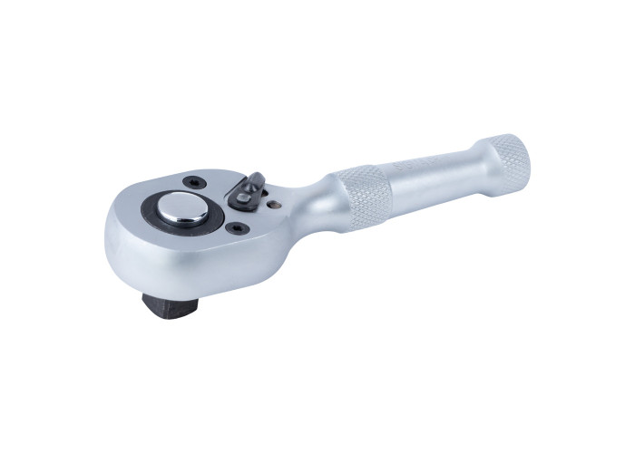 Ключ-тріскачка з вигнутою ручкою 1/2" 140мм 45T CrV 6050231 призначений для монтажу і демонтажу різьбових з'єднань. Застосовується для слюсарних робіт, а також як інструмент на автосервісі при ремонті вузлів автомобілів. Конструкція ключа-тріскачки досить проста:: вигнута рукоятка і головка, в якій розміщений храповий механізм. Додатковий вигин рукоятки дозволяє працювати у важкодоступних місцях. Ключ-тріскачка має невеликий крутний момент, працює плавно і м'яко, що забезпечує комфорт під час роботи. Конструкція передбачає кнопку швидкого скидання для швидкої зміни торцевих головок. 72-зубцейвий механізм, що забезпечує високий крутний момент.