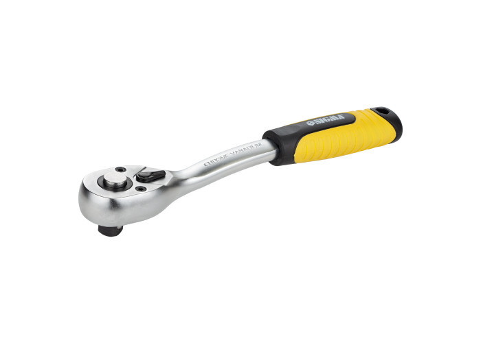 Ключ-трищітка з ручкою 1/2 "250мм 72T CrV Sigma (6050091) призначений для монтажу і демонтажу різьбових з'єднань. Застосовується для слюсарних робіт, а також як інструмент на автосервісі при ремонті вузлів автомобілів. Пристрій трищіткового ключа досить простий: вигнута рукоятка і головка, в якій розміщений храповий механізм. Додатковий вигин рукоятки дозволяє працювати у важкодоступних місцях. Реверсивний механізм, яким обладнаний ключ-тріскачка, дозволяє вибирати напрямок обертання інструменту. Храпова модуль дозволяє демонтувати елементи кріплення без відриву інструменту від відкручувати деталі. Це дуже цінна якість, завдяки якому можливо здійснювати монтажні і демонтажні роботи в місцях з обмеженим простором. Ключ-тріскачка має невеликий крутний момент, працює плавно і м'яко, що забезпечує комфорт під час роботи. конструкція передбачає кнопку швидкого скидання для швидкої зміни торцевих головок. для збільшення зносостійкості і довговічності має додаткове антикорозійне покриття, яке є надійним захистом від