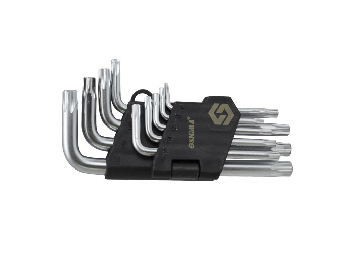Ключі TORX 9 шт T10-T50 CrV (короткі з отвором) Sigma (4022211) виготовлені з хромванадієвої сталі і укомплектовані в зручні пластмасові футляри. Твердість робочої частини ключів 56-60 HRС. Використовуються під час робіт з кріпленням, які мають гніздо TORX. У комплектацію набору входять ключі з розмірами T10, T20, T25, T27, T30, T40, T45, T50. Переваги: CrV сталь; покриття Satin Chrome; пластиковий тримач; 9 предметів: короткі T10, T15, T20, T25, T27, T30, T40, T45, T50. Купити ключі TORX Sigma Ви можете, оформивши замовлення в нашому інтернет-магазині за допомогою простої форми, доставка здійснюється по всій Україні. Якщо у Вас виникли питання, Ви можете зателефонувати за вказаними номерами телефонів або замовити зворотний дзвінок. Фахівці нашого інтернет-магазину нададуть Вам докладні консультації та допоможуть зробити правильний вибір.