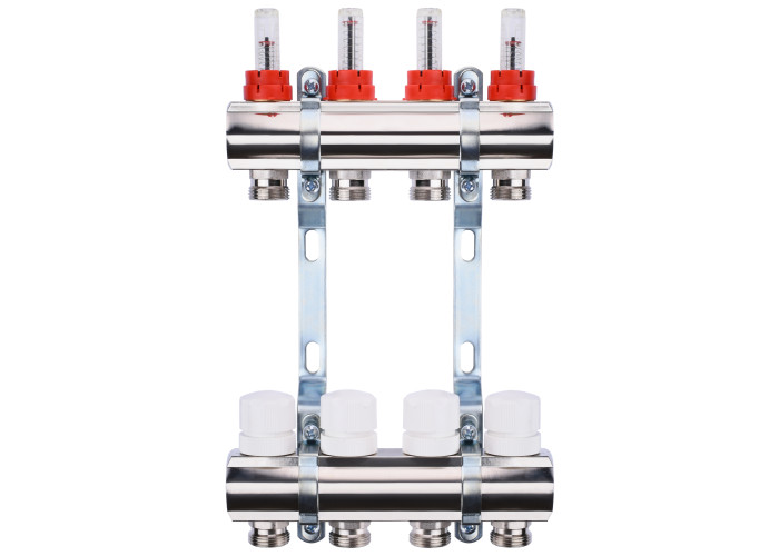 Колектор з вимірювачем витрат, регуляторами та кріпленням ECO 001A 1"x4