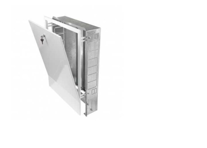 Шафа колекторний призначений для розміщення розподільника опалювального контуру і центрального вузла для регулювання температури нагріву для окремих приміщень складається з: