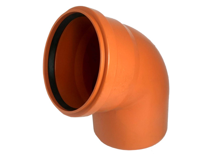 Коліно для зовнішньої каналізації Pestan. Розмір 200, кут 67. Матеріал поліпропілен. Колір помаранчевий. Виробник Сербія.