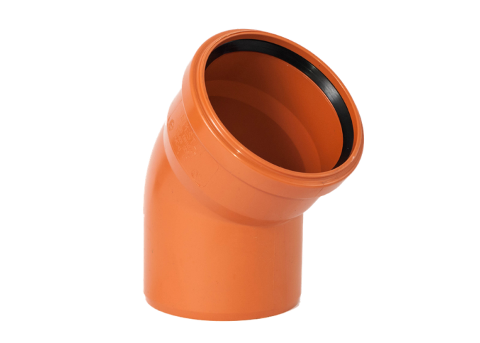 Коліно для зовнішньої каналізації Pestan. Розмір 315, кут 45. Колір помаранчевий. Виробник Сербія.