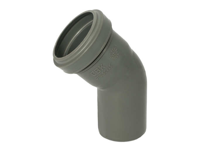 Коліно діаметр 50 мм, кут 90 градусів СВК для внутрішньої каналізації. СВК - це торгова марка каналізаційних труб і фітингів класу економ. Продукція призначена для обладнання систем водовідведення з максимальною температурою стічної рідини 60 град. і короткочасної (до 1 хв.) 95 градусів, а також для вентиляції і для внутрішніх зливових стоків. Також продукція оснащена ущільнювачів гумками. ПВХ продукція виробляється з непластифікованого полівінілхлориду як монолітна (одношарова), так і тришарова. Вона не псується корозією, стійка до дії кислот, лугів і солей. Монтувати конструкцію на місці досить просто, а з'єднання виходить герметичним. При демонтажі або заміні усувається деталь також швидко. Відмінні техніко-економічні характеристики показали ПВХ каналізаційні труби і фітинги з діаметрами 110-200 мм, що зробило їх дуже популярним в приватному будівництві (дачі, невеликі будови). Характеристики: виготовлені з поліпропілену, призначені для монтажу каналізації, а саме для внутрішніх каналізаційних мереж. Виробник: "СВК", Україна.