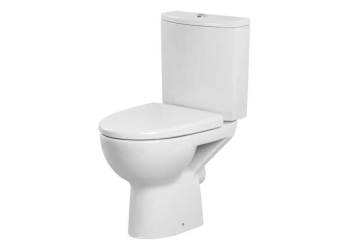 Компактний округлий унітаз PARVA CLEAN ON обладнаний економною системою змиву 3/6 л, яка дозволяє контролювати ступінь споживання води. Компакт має горизонтальний відтік і вхід води з низу бака. У набір також входить антибактеріальна кришка з дюропласту.