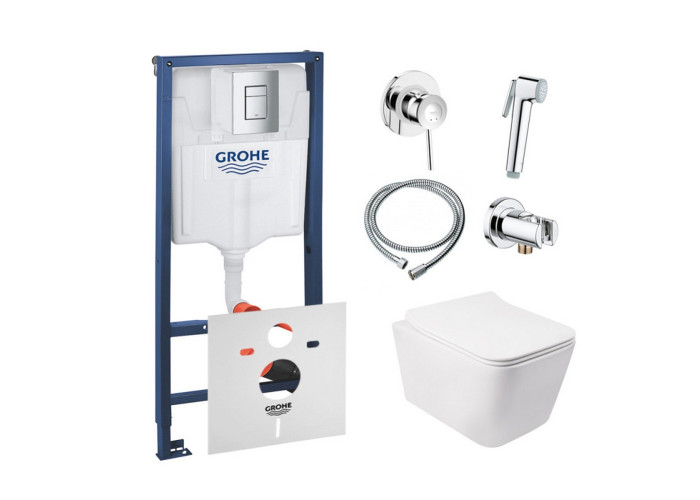 Комплект унітаз з сидінням Qtap Crow WHI 5170 + інсталяція Grohe Rapid SL 38772001 + набір для гігієнічного душу зі змішувачем Grohe BauClassic 111048 є надійним і практичним доповненням будь-якого сучасного санвузла й відмінним рішенням поліпшення рівня гігієнічних процедур. Комплект складається з якісного та зручного унітаза з сидінням, надійної інсталяційної системи з панеллою змиву, а також гігієнічного душу зі змішувачем, що дозволить розширити функціонал санвузла в цілому.