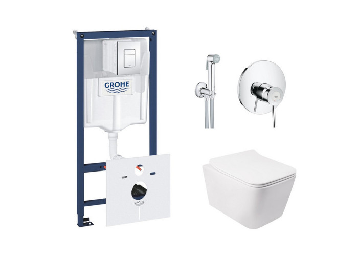Комплект інсталяція Grohe Rapid SL 38827000 + унітаз з сидінням Qtap Crow QT05335170W + набір для гігієнічного душу зі змішувачем Grohe BauClassic 2904800S