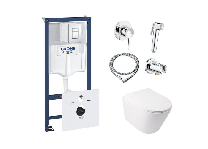 Комплект інсталяція Grohe Rapid SL 38827000 + унітаз з сидінням Qtap Swan QT16335178W + набір для гігієнічного душу зі змішувачем Grohe BauClassic 111048