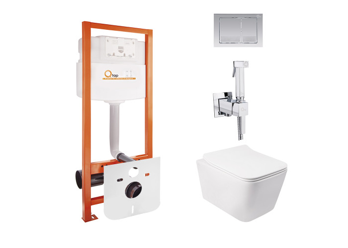 Комплект Qtap інсталяція Nest QTNESTM425M06CRM + унітаз з сидінням Crow QT05335170W + набір для гігієнічного душу зі змішувачем Inspai-Varius QTINSVARCRMV00440201