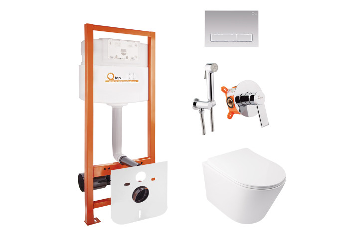 Комплект Qtap інсталяція Nest QTNESTM425M08CRM + унітаз з сидінням Swan QT16335178W + набір для гігієнічного душу зі змішувачем Form QTFORMCRM001AB - сміливе рішення для сучасного санвузла. Він комплектується унітазом, сидінням, інсталяцією, бачком, панеллю змиву, звукоізоляційною прокладкою й набором для гігієнічного душу. Даний комплект зробить ваші гігієнічні процедури більш комфортними, а прибирання - без зайвого клопоту.