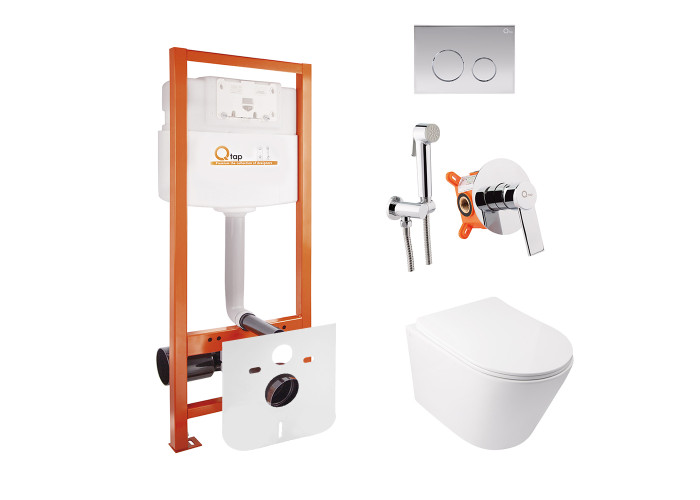 Комплект Qtap інсталяція Nest QTNESTM425M11CRM + унітаз з сидінням Swan QT16335178W + набір для гігієнічного душу зі змішувачем Form QTFORMCRM001AB