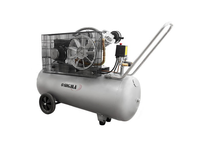 Компресор двоциліндровий ремінний 2.5 кВт 396 л/хв 10 бар 100 л (2 крана) Sigma (7044151) призначений для нагнітання стисненого повітря з подальшою його подачею під тиском в різні типи пневмоінструменту і пневмообладнання. Ресивер ємкістю 100 л дозволяє накопичувати великий об'єм стиснутого повітря. Особливості: встановлені зворотний і запобіжний клапани; зручно розташована пробка дозволяє легко і швидко злити конденсат з ресивера; встановлено універсальний швидкороз'ємний латунний конектор діаметром ¼"; два манометра дозволяють контролювати тиск всередині ресивера і тиск на виході; регульований робочий тиск; спеціальний кожух захищає двигун від пошкоджень, бруду, вологи і пилу; ремінний привід захищений кожухом; високоміцний ресивер; низький рівень вібрації і шуму; простота транспортування.