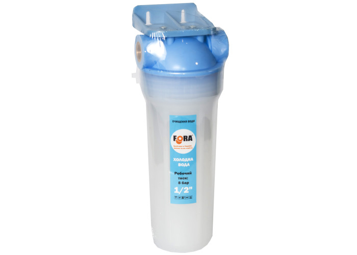 Пластикова непрозора колба молочного кольору для магістрального фільтра. Клас продукції економ. Місце виробництва: Україна. Матеріал різьб - латунь. Верхівка колби синого кольору. Варіанти діаметрів: 1/2, 3/4 і 1 дюйм. На кожній колбі нанесено маркування. Робочий тис 8 бар. Температура води: до 40 градусів