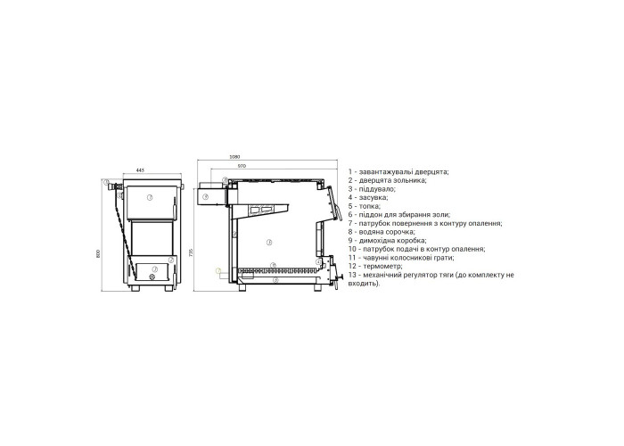 Габаритні розміри котла (ВхШхГ), мм 800х500х1070