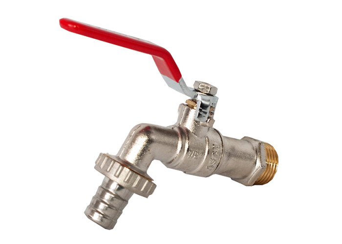 Латунний нікельований кран, що застосовується у якості запірної арматури на трубопроводах систем водопостачання (у тому числі питного) з робочою температурою до 75 º С і тиском до 10 бар. Наявність знімного штуцера з накидною гайкою дає можливість виробляти його заміну в залежності від діаметра і матеріалу застосовуваного шланга. Розсікач забезпечує формування компактного струменя виливу. Кран оснащений алюмінієвою рукояттю. Різьба приєднання - зовнішня. Неремонтопридатний. Мінімальний ресурс - 4 тис. циклів. Крани для поливу мають ще дві назви: кран зі штуцером і кран-пиво. Перша назва обумовлено наявністю виходу типу "йорж", друге, тому що кран врізається в ємність з водою. Відрізняються крани видом покриття (є нікель чи ні) і типом латуні (найкращий варіант марка CW617N).