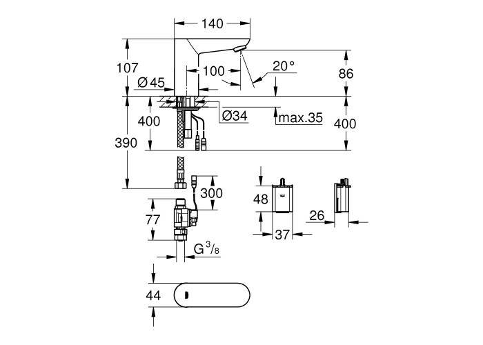 Кран безконтактний для раковини Grohe Euroeco Cosmopolitan E 36271000 для холодної або попередньо змішаної води, виготовлений з латуні. Глянцева хромована поверхня не тільки гарантує довговічність крану, але й надає оригінальний зовнішній вигляд. Управління відбувається за допомогою інфрачервоного давача руху. Підключення води відбувається через гнучкі шланги з діаметром підмикання 3/8", які є в комплекті. Має сучасний дизайн та зручний у використанні.