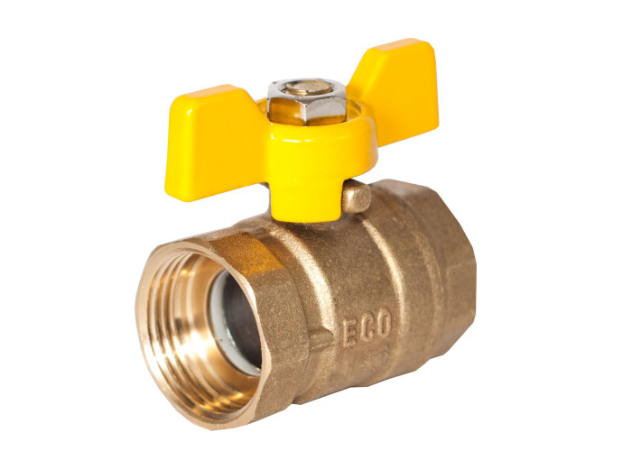 Кран кульовий 3/4" ВВ жовтий метелик 16/160. Виготовляють з латуні. Китай. Адаптований до вітчизняних умов експлуатації кульовий кран «економної» серії ECO Steel: стандартного проходу, не підлягає ремонту, з мінімальним ресурсом в 4 тис. циклів. Оснащений ручкою типу «метелик» або «ручка» залежно від моделі, колір червоний, жовтий або синій. Не допускається до установки на стояках, магістральних трубопроводах і ділянках систем, в яких можуть виникнути згинальні зусилля, передані на корпус крана. Діаметр від 1/2” до 2”. Тип з’єднання: внутрішнє/внутрішнє, внутрішнє/зовнішнє, зовнішнє/зовнішнє. Крани виконані з латуні без покриття, яскраво-жовтого кольору.