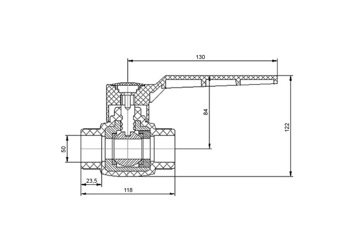 Кран кульовий Blue Ocean 50 з обох сторін має приєднувальний діаметр 40 мм. Для встановлення виробу на ділянці трубопроводу буде потрібно застосувати спеціальний паяльник для поліфузного зварювання. В процесі експлуатації тиск не повинен перевищувати 25 бар при температурі носія 20 °C (PN25). Сфера використання крана — трубопроводи з максимальною температурою робочого середовища 60 градусів Цельсія. Матеріал виготовлення — ABS (куля-затвор) і PPR (корпус).