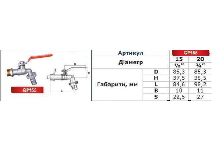 Кран кульовий поливальні 1/2 "PROFESSIONAL NV-QP155 NEW !!!