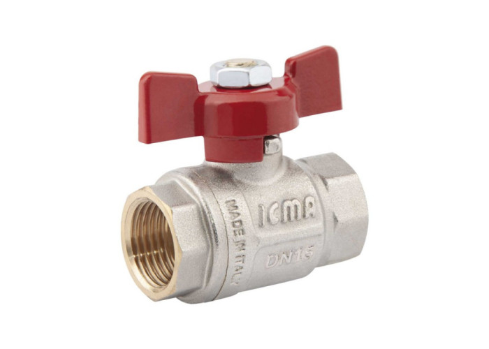 Кульовий кран. Максимальна робоча температура 150 ° С. Максимальний робочий тиск 50 бар. Матеріал латунь, покриття нікель. Розмір підключення 1/2". Різьба внутрішня / зовнішня. Виготовлено в Італії. Тип підключення різьблення. Тип важеля бабочка.