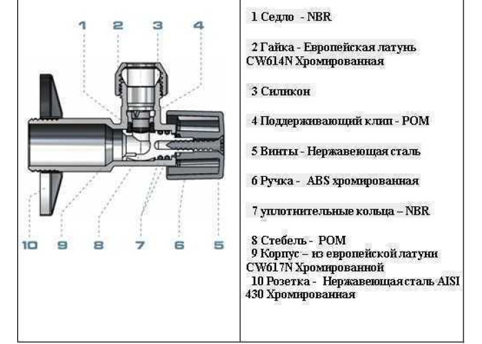 Корпус виробу виготовлений з високоміцної нікельованої латуні марки CW614N Euro. Крім того кран додатково хромований для високого порогу корозостійкості
