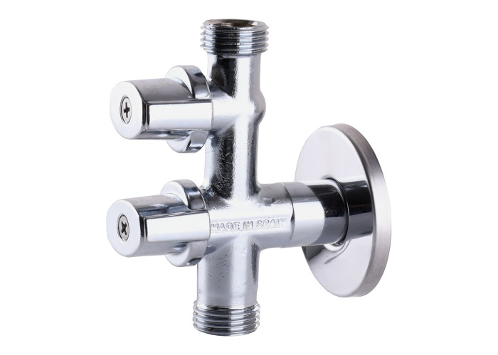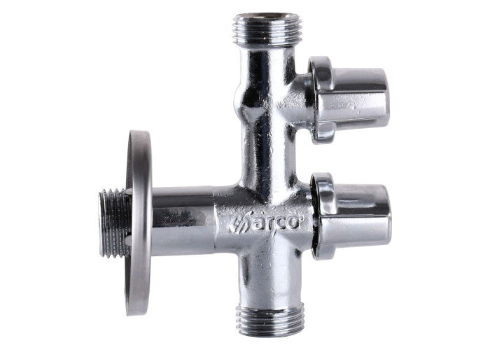 Кран кутовий кульовий подвійний 1/2 "х 1/2" х1 / 2 "ARCO CQ4105 AntiLime A80TWIN обєднує 2 незалежних виходу в один корпус і використовується в сантехнічних установках. Ці клапани являють собою систему VITAQ, яка показала відмінні результати. Внутрішній механізм, виконаний зі спеціального матеріалу який мінімізує вплив вапна на клапани. Ці клапани можуть відключати індивідуально і незалежно від водопостачання обладнання або компоненти, підключені до кожного з двох його виходів, таких як раковини, туалети, цистерни .Моделі A-80 TWIN предлаг ают 2 незалежних виходу від одного входу з мережі питної води.