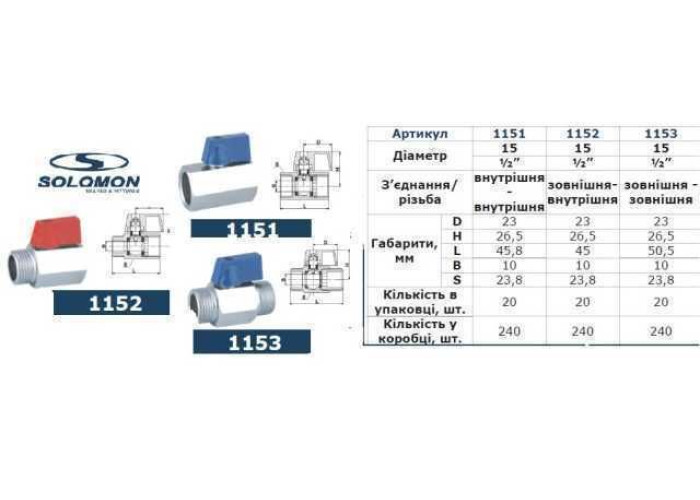 Технічні характеристики Кран кульовий міні 1/2 "нв Solomon 1152: