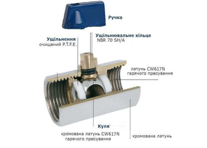 Корпус крана проводиться методом гарячого кування, матеріалом служить спеціальна латунь, покрита хромом для стійкості до високого тиску і захисту від впливу всіляких агресивних компонентів при створенні трубопроводів, хромовані латунні штоки і кульові затвори, оброблені за допомогою полірування, виключають закипання несучих деталей запірної арматури, значно збільшуючи термін експлуатації