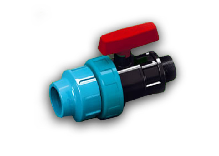 Кран кульовий для поліетиленових труб, різьба зовнішня 1 1/2", діаметр 50 мм. Компресійні фітинги застосовуються для створення зовнішніх водопроводів, поливних систем і використовуються переважно для транспортування холодної води. Переваги: доступність за ціною, невелика вага, швидкий і легкий монтаж, що не вимагає додаткових інструментів, можливість створення роз'ємних з'єднань. Номінальна температура для застосування 20˚С, а максимальна робоча температура - до 60˚С в межах робочого діапазону труб. Номінальний тиск залежить від діаметра: для 16, 20, 25, 32, 40, 50, 63 мм воно складає 16 бар, для фітингів 75, 90 і 110 - 12,5 бар відповідно. Компресійні фітинги виробляються відповідно до стандартів UNI, ISO, DIN, NF, різьба відповідно до UNI, а фланцеві з'єднання відповідають вимогам UNI і DIN. Всі фітинги виконані відповідно до загальних технічних умов. Для виготовлення фітингів використовується чорний поліпропілен для корпусу, чорна прокладка з нітрилової гуми, біле затискне кільце з поліацетата і гайка з поліпропілену.
