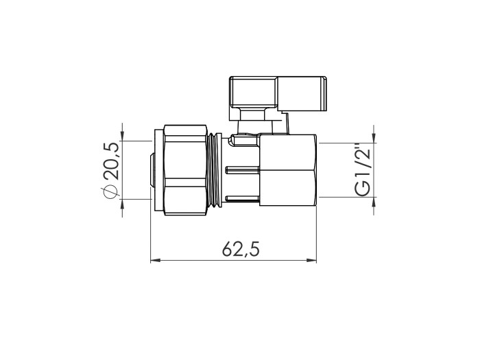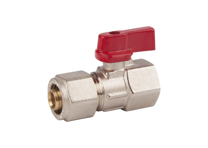 Кран кульовий обтискний SD Forte Ø20х1/2" ВР виготовлений з латуні з нікельованим покриттям. Для труб з діаметром 16 мм.